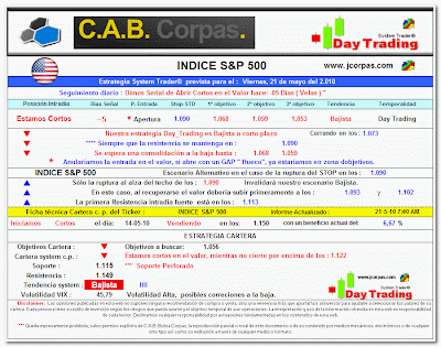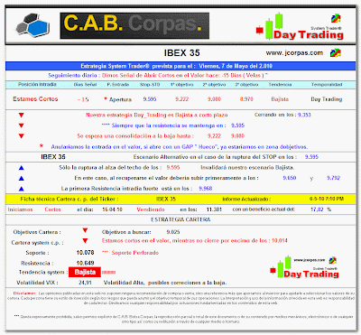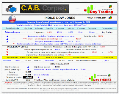Escenario previsto para viernes 11-06-2010 según Corpas Bolsa Finanzas para INDICE IBEX 35.